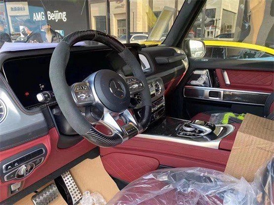 作为AMG系列的车型,这款G63的前脸与普通的奔驰G级 (配置|询价)前脸是不一样的,它采用的是一个纵向的直瀑式样格栅,并且在格式中间还有一个熏黑的车标,看上去就显得大气与奢华一些。15611224455 同微信