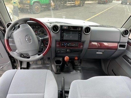 这辆酷路泽的车内部分,驾驶室精简明了,导航屏幕的安装使得它偏向于现代化汽车设计,内饰复古桃木面板很经典,圆形的空调出风口很直接,车内配置也有很多,当然这些配置都是为了越野服务的电子配置并不多,因为电子配置太多会影响它的可靠性。不过酷路泽LC79车内有灰色帆布包裹,车内还有大量的“Namib”标志,空调出风口可以直达手套箱,