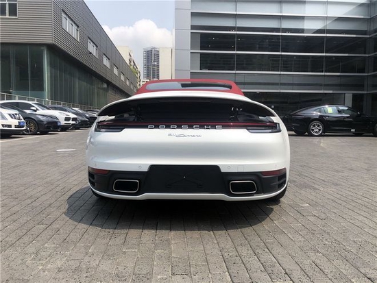 保时捷911 Carrera 4S敞篷版车尾的横贯式尾灯组、进气格栅和后包围均为保时捷最新设计,引擎的进气口采用垂直格栅设计,竖状的高位刹车灯则与格栅很巧妙地融合。