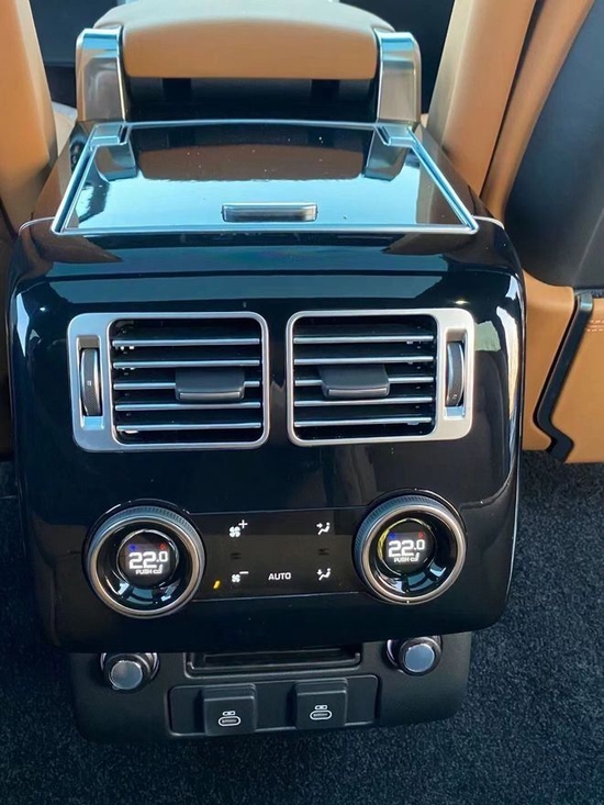 最新22款路虎揽胜创世加长整个内饰更加高贵典雅,选材考究做工精益求精,触手所及之处均由高级真皮包裹并配有实木材质覆盖,之间点缀着质感出色的金属装饰条,整个内饰无论触感还是视觉效果都堪称一流,能充分的向你诠释“豪华”的定义。