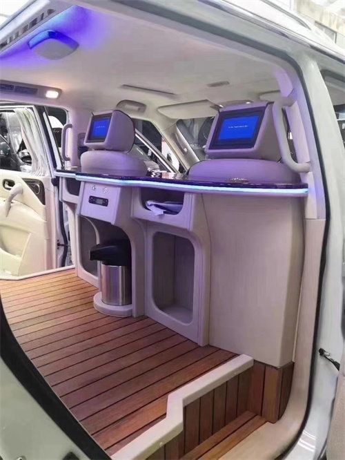 商务小桌板:在汽车内饰改装上,小桌板也是发挥着它不一样闪亮点,折叠设计不占用空间,结构稳定,承重力好在忙碌的工作当中可以放上你的办公设备,提高工作效率。有了小桌板,休息之余泡上一杯香醇浓郁的咖啡,再也不用担心没有多余的位置摆放木质地板:现如今,商务、家庭用车改装木质地板也越来越多,简洁大气,瞬间提升内饰档次,最主要的还是木质地板的质感增强了乘车的舒适性和满足感。木质地板作为汽车内饰寿命较高,体验感强烈,所表现出来的气质和其他汽车内饰也是截然不同的,在视觉的冲击之下,也是一辆汽车最容易出彩的地方。