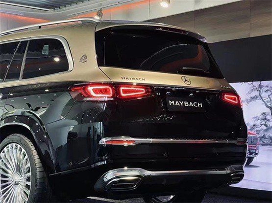 新车采用双色车漆喷涂,配备23英寸多幅熏黑轮毂,D柱之上镶嵌迈巴赫专属LOGO,同时车窗周边的镀铬装饰也凸显了尊贵的身份,整体的车身设计简洁而干练。车尾也采用了大量的镀铬装饰,GLS 600和Maybach英文标识所使用的字体样式相比以往车型质感更强。