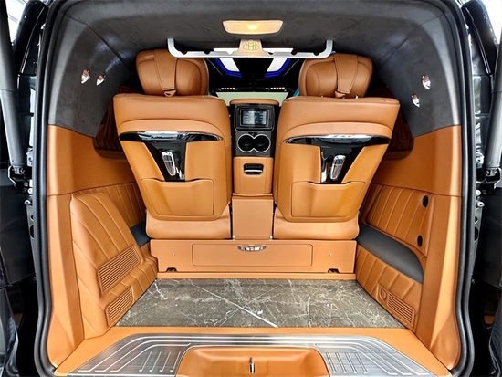 前后舱采用无隔断设计,主副驾驶后上方安装有24寸固定式液晶电视,配合德国海螺音响,可供您办公及长途行驶时娱乐,主副座椅还配有两个隐藏式手动小桌板,可承重5KG。无隔断设计非常适合家庭用车。