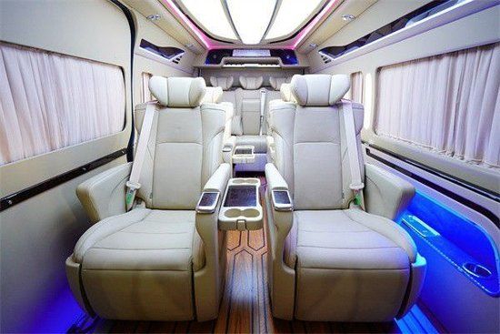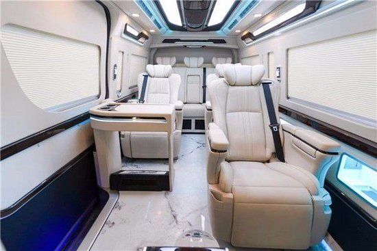 丰田海狮商务车采用2+2+2+3四排九座的设计,第二排和第三排配备了两个Ottoman航空座椅,第三排放一张三人座的沙发床,即宽敞又实用,这样的情况下后备箱还能垂直放下四套高尔夫球装备!空间大才是真的王道。除了空间优势外,豪华性方面真皮、木质以及烤漆饰板的加入使得新车的内饰更具豪华度,车顶的设计时尚、大气,装彩色航空顶灯,星空顶,流水灯充满着奢靡的味道,点亮后车内的氛围是其它商务车所不能比拟的,也是的丰田海狮在内饰的环境上展现出与众不同的色彩,家庭出游必备首选。
