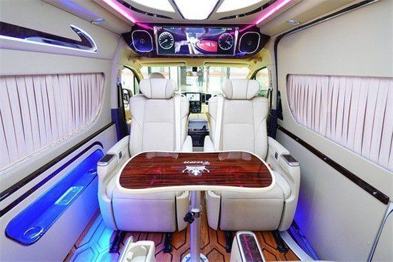 丰田(进口)海狮-HIACE驾驶舱升级9寸导航,搭配360度全车影像,红木方向盘,升级了原厂桃木纹内饰改为进口红木,豪华感顿显。主副驾驶座椅真皮包覆,主副驾驶座椅四向电动调节带通风加热,主副驾驶中间升级车载扶手冰箱。丰田(进口)海狮-HIACE主副驾驶后面,加装了24寸高清液晶电视娱乐系统,全车升级阿尔派音响系统。咨询电话在最下方