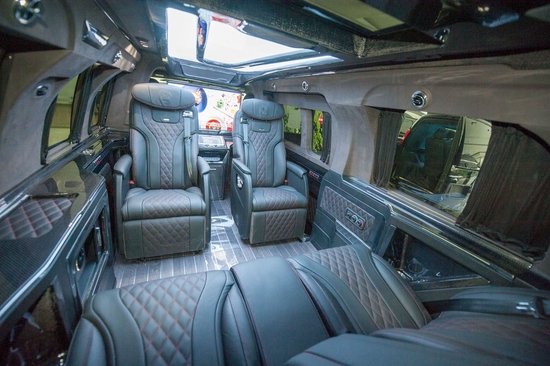 GMC商务车首领级商务车秉承了美国奢华房车的一贯风格,外形高大威猛,辅以大型双对拉式中门及高顶规划,并且选用了很多镀铬饰件,能够说只需置身于该车中,到处都能感受到其所显示的君临天下的霸气。