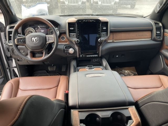 道奇公羊皮卡在内部设计上还是延续了美式那种比较粗犷的风格,规整的中控台设计看上去比较死板,但丰富的配置会让你不由得为其称赞,中控台的设计简洁硬派,符合公羊的气质,仪表盘底边有花纹,则更加凸显了这款车的文雅性,软性材质的仪表台设计,摸上去手感非常舒服,并无些许生硬之处。
