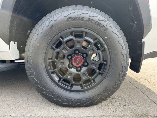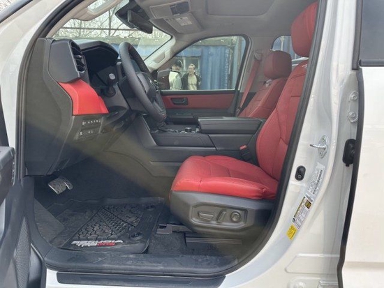 美版23款红杉 TRD PRO版配置:10速自动变速器。带黑色装饰的高级LED大灯、LED日间行车灯(DRL)、顺序转向灯和自动水平调节。18英寸TRD Pro哑光黑色锻造铝BBS带TRD中心盖的车轮。全景监视器(PVM)带相机。无线AndroidAuto&CarPlay兼容的。14英寸带14个JBL的ToyotaAudio多媒体触摸屏扬声器,包括低音炮和放大器。4W需求兼职四轮驱动。TRD Pro越野悬架,2.5英寸。福克斯内部旁路避震器和后部远程油箱减震器,以及TRD Pro前稳定杆。选配:急救包,TRD行李架,漆面保护膜,TRD高性能空气过滤器,轮毂锁,门护板