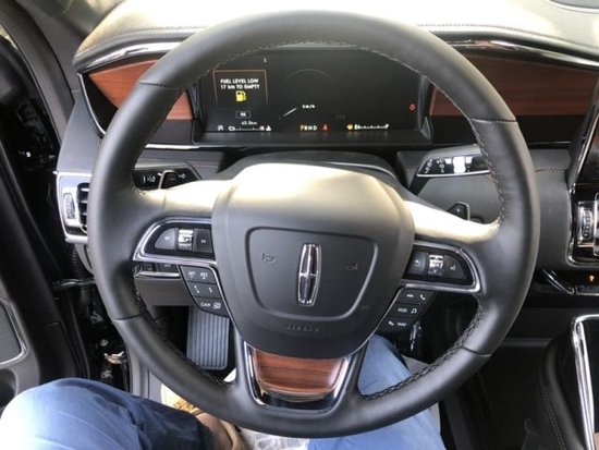 22款林肯领航员新款三幅式多功能方向盘带加热功能,真皮包裹方向盘兼具温润触感与典雅质感,三幅式设计令操控更加得心应手,在尊崇气息之上平添一分动感魅力。真皮部分可在短时间内加热,即便在寒冷的天气状况下,也能保持对温度的掌控感。内饰豪华气派,做工精细。车内大量皮质和实木材覆盖,让人即刻尊享定制体验。新款林肯领航员采用12英寸全液晶的仪表盘,悬浮式显示屏,科技感十足。