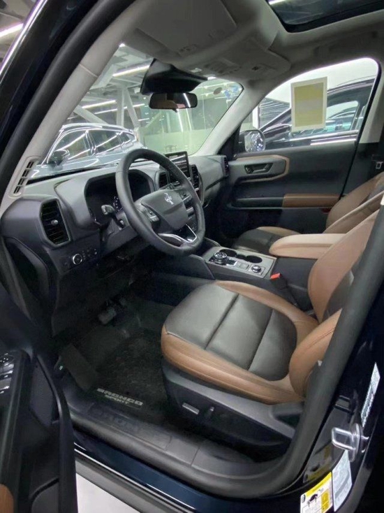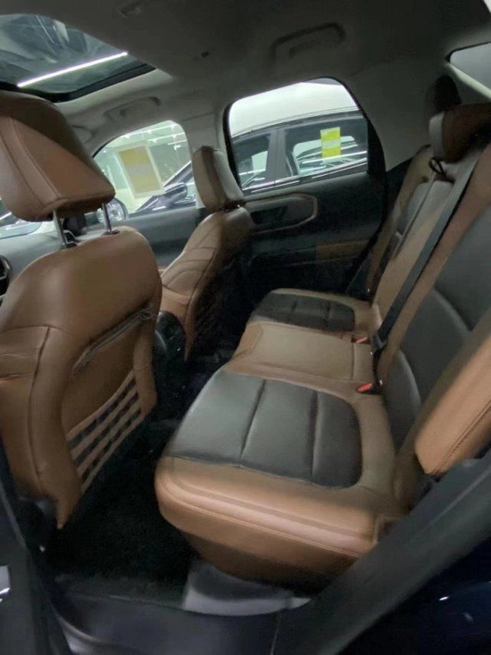22款墨版烈马 BroncoSport 2.0T配置:8速变速箱 方向盘换档拨杆 自动启停系统 越野悬架 7中地形模式( 正常,节能,运动,雨滑,泥沟,沙子,岩石爬行) 可阻断差速器电动助力转向 自动紧急制动防撞辅助(带行人检测)倒车雷达 影像 营地室外照明系统(后备箱) 盲点监测6.5英寸数字仪表板 胎压监测 移动设备的无线充电器 BO音响 9气囊 座椅加热 远程点火 旋钮档把 110V/400W电流转换器 17英寸(235/65R17全地形越野轮胎)