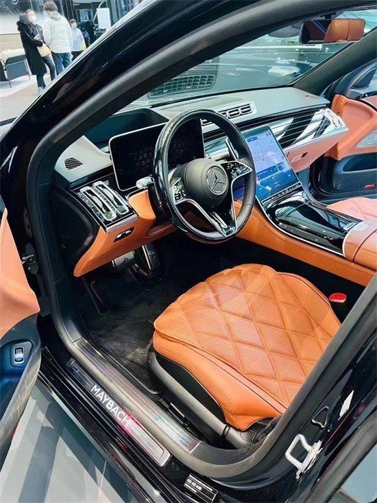 全新迈巴赫S 580的内饰走的是科技路线,新车采用了三幅式的全新造型的方向盘,新车的中控台上采用了钢琴烤漆面板装饰,上面采用了多条横向的白色装饰条点缀。全新迈巴赫S 580采用了-悬浮式的纵置大屏,液晶仪表采用了悬浮式的风格。