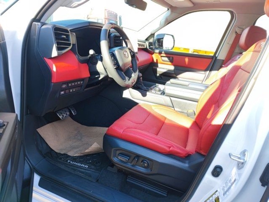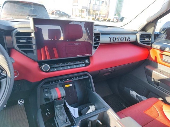 22款加版丰田坦途 混动 TRD Pro 3.5T 白外红内 原厂升高,后差速锁配置:3.5双涡轮增压V6带混动、18寸TRD Pro黑色锻造BBS轮毂、多地形视图监视器、使用RCTA和RCTB进行盲点监测、12扬声器JBL音响、分时四驱、全景天窗、雷测、倒影、独立前悬挂、TRD越野减震器、5连杆后悬挂、TRD Pro 前稳定杆、带1.1英寸的TRD Pro越野悬架(原厂升高2.5英寸带FOX减震)、后差速锁、DAC下坡辅助控制、蠕行、多地形选择、全TFT LCD仪表盘、无线充电、带自动制动功能的直观泊车辅助系统、盲区检测(带后方横向交通警报系统和倒车侧向交通警报系统)、自动远光灯、双光束LED大灯、带有手动水平控制的前照灯、日间行车灯、雾灯、熏黑大灯雾灯、外部黄色标志灯、前TRD Pro Heritage 格栅LED灯条、驾驶模式选择、电动尾门、