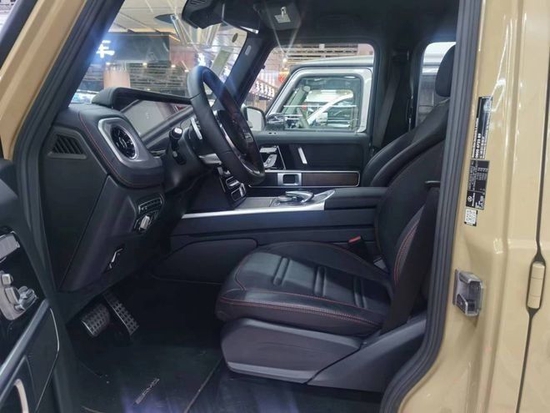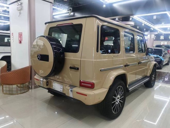 奔驰G350欧版 20款 AMG 20轮毂,G制造商-沙漠黄,AMG黑色内饰,核桃木内饰,不锈钢包(黑色条纹外观带装饰嵌条外部保护条,不锈钢备用轮胎盖,侧踏板),