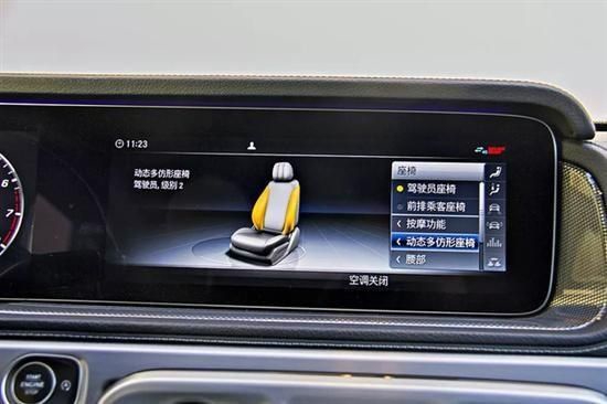 12.3寸双大屏就不用太多介绍了,炫、实用、科技感十足,不过唯一不足就是不支持触控。尽管Comand系统操作并不算难用,但是仍感觉不如直接触控来的方便。当然为了进一步提升豪华感“柏林之声”音响第一次出现在G级身上,您上车就会变得很纠结了:我是到底听V8排气声浪?还是听乐音呢?当然为了隔音更出色,这代奔驰G级前排使用双层玻璃,车内隔音效果更好。