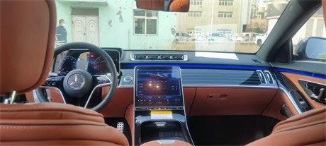2023款奔驰S500内饰设计就像一座移动的总统套房,相当的豪华。中控部分搭载了双屏设计,12.8英寸的中控大屏以及12.3英寸的悬浮式行车电脑屏,配上米色的内饰设计,颜值感很出众。此外,车内还使用了HUD投影显示以及高亮的钢琴烤漆面板,将科技感与时尚感结合得相当到位。