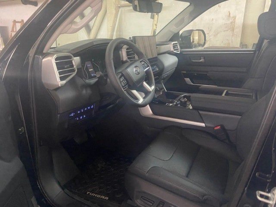 22款丰田坦途3.5TT的座椅提供有皮质包裹,整体的造型也非常宽大,在中央扶手区域的设计上也采用了非常方正的造型设计,并且可以看到前排的储物空间设计还是非常丰富的。