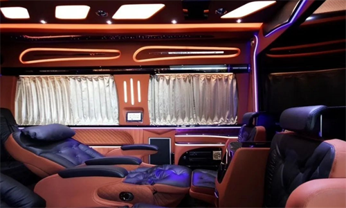 下面,小编想给大家提供一些改装思路。新款奔驰斯宾特可以采用全隔断的布局,高清升降55寸曲屏电视,一键开启。俯视整个奔驰斯宾特商务车内饰,进口柏林音响给展示完美的听觉盛宴。商务车华丽的吧台,整车随行时钟。这些组成的隔断部分不但可以保证后排空间的私密性,也能在后排享受一个娱乐氛围,看电视,听音乐,放松全身心。豪华驾驶座+航空按摩座椅+双人连排座椅。