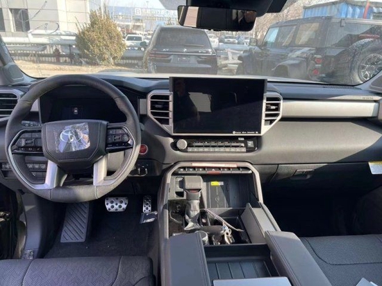 23款丰田红杉采用的是四辐式多功能方向盘,并保留了很多物理按键,足以满足驾驶时想要的操控感,车内的科技氛围是通过12.3英寸的全液晶仪表盘和14英寸的中控屏来实现的,中控屏两侧的空调出风口,虽然没有采用时下流行的贯通式设计,但在中控台上对称排列也别有一番风味。