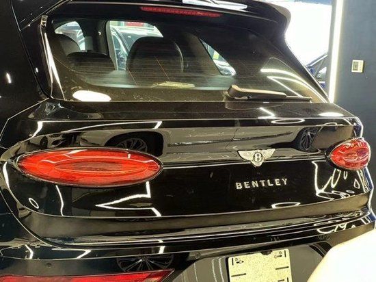 22款宾利添越车尾部分,新款添越使用了宾利最新家族式的尾部设计,整体看上去十分简洁、椭圆形尾灯犹如两颗珠宝,十分璀璨。 双边共四出的排气,标志着新款宾利添越依然有着十分强悍的性能。