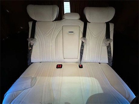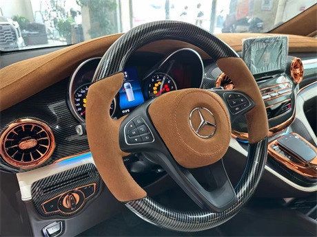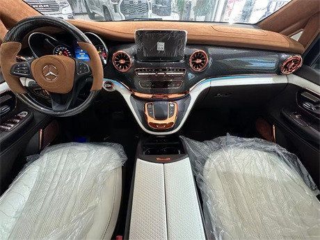 22款奔驰V250内饰非常奢华,无论是中控台还是方向盘,都与奔驰轿车采取了相同的规划,进入车内,绝对能让你情不自禁的感叹道:这才是大奔!环顾座椅四周,真皮、实木、金属合理搭配,整体视觉效果相当不错,做工方面,V级车内饰自然也坚持了豪华品牌应有的高水准。奔驰V级 采用的三幅式方向盘是与C级 (配置|询价)同款样式,所以,不会给驾驶者带来开大车的压力。换挡拨片的加入,也算是一处惊喜。