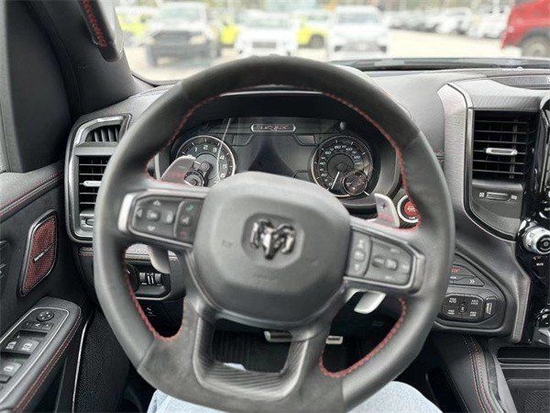 22款道奇霸王龙内饰部分进一步强化了其高性能版本的形象,中控台和座椅随处可见的TRX标识便是最好的例证。同时,作为道奇家族的旗舰车型,新车还配备了12英寸竖置中控屏幕,除了支持蓝牙、导航和车载Wi-Fi等常见功能,还支持AppleCarPlay和Android Auto手机映射。