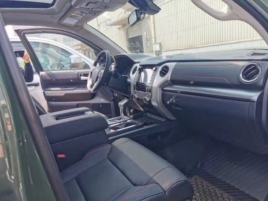 这款车主要在北美销售,国内进口少量。很适合长途旅行的代步工具,它受到一度追捧的原因在于它的多功能性--集合了SUV的越野性能、卡车的载货能力、以及轿车的舒适性。丰田坦途五个小仪表给出了司机应该注意的技术参数,转速表、时速表、油量表、水温表、电池/机油表依次排列,数据显示清晰明了,中控台科技感十足,三辐方向盘延续了家族设计理念。金属、木材、皮革等多材料营造了相当豪华的视觉感受,丰田坦途内饰简洁大方依旧突出了实用特点,室内色彩的精致搭配,让整个内部空间既充满质感又倍感时尚。