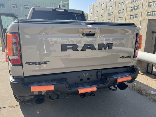 2022款道奇霸王龙传承了道奇Ram家族高大威猛的造型设计,同时细节部分融入了更多高性能元素,包括经过黑化处理的前格栅,引擎盖两侧的黑色进气口,以及为了容纳巨大的机械增压器而设计的通风口等等。此外,新车还配备了视觉冲击力更强的黑色轮眉和外露式的拖车钩,看上去十分霸气。