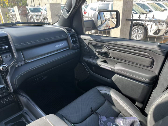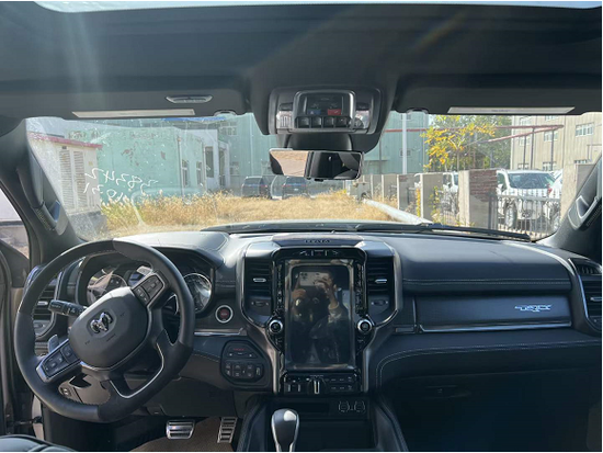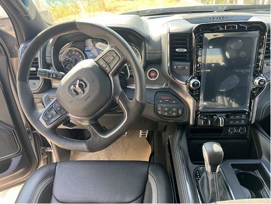 2022款道奇霸王龙内饰部分进一步强化了其高性能版本的形象,中控台和座椅随处可见的TRX标识便是最好的例证。同时,作为道奇Ram家族的旗舰车型,新车还配备了12英寸竖置中控屏幕,除了支持蓝牙、导航和车载Wi-Fi等常见功能,还支持Apple CarPlay和Android Auto手机映射。
