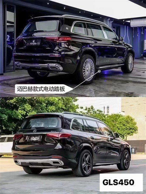 23款奔驰GLS450 (配置|询价)改装升级迈巴赫GLS600 (配置|询价)保留了与奔驰GLS相同的车身轮廓及线条,同时加入了更多象征着豪华的细节设计,迈巴赫的包围,前脸被直瀑式的镀铬中网和前杠大面积覆盖,显得很有威严感,迈巴赫的字标,层次分明的尾灯、雾灯与排气尾喉,让尾部也凸显了与众不同的气质风范。