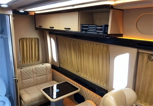 进口奔驰高顶斯宾特座椅旋转对坐搭起小桌板,桌板的贴心的设计四个下凹杯托,或是咖啡酒水的陪伴交流更加畅顺。免提前后对讲系统、带隐私门帘,保证私密空间的同时也能顺畅交流。