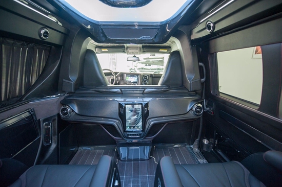 进口GMC商务之星为了让车内拥有娱乐办公功能,又能保持活跃气氛,设计团队费劲心思,打造了全新无全封闭式前后舱,仅用可升降液晶电视做隔档,既能放下隔档与驾驶舱愉悦交谈,也能升起电视休闲、工作一下。