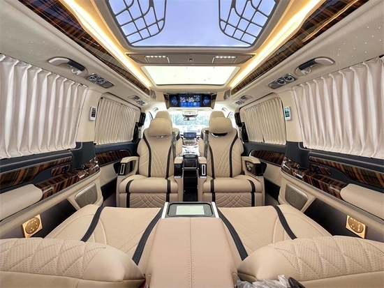 大家好我是小魏,在高端商务车系里边,能顾全商务旅程舒适体验的高规格车型很多,但最讲究个性享受的还得看奔驰。作为世界一线豪车品牌,奔驰商务车是绝对绕不过的标杆,超强的品牌效应,优越的内部空间,以及极高的改装潜力是大家喜爱他的原因。今天给大家带来的就是奔驰V级 定制改装的一款豪华七座商务车。整车尺寸:5400x1928x2095,轴距:3430(mm),搭载2.0T高功率汽油发动机,9速自动变速箱。