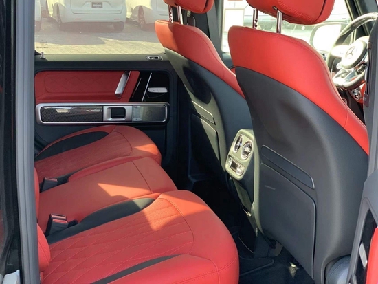 2023款奔驰G63内饰档次质感和科技配置都明显提升相比老款有了明显的提升、并且出现在各个级别车型的中控台上也毫不违和、既能用在典雅的S级 (配置|询价)上也能用在硬派的G级 (配置|询价)上。新车主驾驶正前方的三幅式多功能方向盘采用平底造型,两侧使用打孔真皮细节处搭配红色缝线以及AMG专属LOGO。