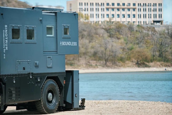 整车最大亮点在于尾部首创的盒式硬拓展机构,独家专利,在加强睡眠空间的同时,相较一般的拓展机构来说保温隔音效果更好,并有效杜绝漏风、漏雨等问题发生,给你舒适安逸的睡眠体验;此外,车尾部分还设有电动液压摩托车架和外挂不锈钢行李箱,户外娱乐性更强。