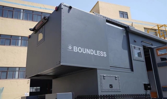 越野专用方舱造型、复合封闭环厢式烤漆厢体、曼灰色涂装效果、不锈钢外包围,黑色喷塑处理等一系列骚操作,在提升颜值同时,让整车在硬派越野风格上格外突出。庞大的车身,超高吨位,拉满颜值效果的同时就犹如远古陆地猛兽一般,可以俯瞰其它各类车型。驾驶室设有顶置行李箱(标配塑料),外部除防滚架外还加装有户外使用的LED越野探照灯以备不时之需,可大幅减少越野行车途中蹭伤、损坏车厢等情况发生。车厢后背式液压升降系统搭载有超大双行李箱、摩托车架;其作用不仅可以携带更多生活物资外,还可挂载摩托车等交通工具,对于喜欢追逐风和自由的摩友来说是福音,开上房车再挂上你心爱的小摩托带你走遍大江南北的同时又体验了越野摩托的刺激感,可谓一举两得。