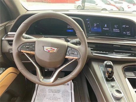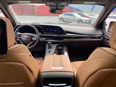 23款凯雷德加长版内饰方面,座舱内搭载错落式的双大尺寸悬浮式荧屏设计,左侧额外设置有一块小尺寸屏幕用于显示车机信息,配合环抱式的中控台面,高耸的悬浮式换挡区,精致的电子档杆,展现出不错的质感,大面积皮革缝线工艺覆盖及各种复杂的特殊面板填充,格调上也符合一款豪华品牌旗舰SUV应有水平。