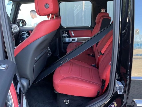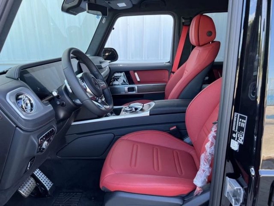 22款墨版奔驰G500 标配 配置:Nappa全真皮、红色安全带、20寸多辐轮,4.0T,V8,9速,天窗,前排真皮座椅通风加热按摩,后座椅加热,全液晶仪表,LED日行灯,64色氛围灯,自动空调,柏林之声音响,三把差速锁,前后电眼,雷达测距,并道辅助,脚踏,后视镜电动折叠,多功能方向盘(蓝牙,定速巡航,换挡拨片)20寸AMG合金多幅轮毂,自适应阻尼。