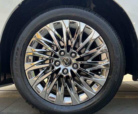 2022款雷克萨斯LM350车身侧面,层次感很强,从B柱开始,每一个部位都使用了L型或者√型的设计风格,车身腰线也是如此,最显眼的凸起腰线是从车头一直延伸至车尾的笔直线条。在车门的下面,能够看到内凹式的设计,从折线上能够看到L型的设计。