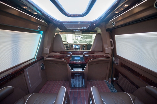 GMC商务之星家庭影院式Harman5.1声道高级影院音响系统,双功放系统,40寸电动升降LED电视机及电动可变色私密隔屏,后舱椅背个人多媒体影音系统,后舱中控台10寸多功能集成操控屏,外置USB接口,4G移动WiFi,220电源,七色流光溢彩环绕式LED氛围灯灯,MAGIC SKY HEADLINER全景梦幻车内顶,公务机舱式新型内饰墙,温度可调冰箱,八方向移动360度旋转电动航空按摩,通风,加热,脚托,腿托座椅,后排全电动沙发床,空气净化器,全车钢琴漆木和白钢拉丝桃木内饰,电动横拉式窗帘,全液晶触摸控制开关,LED 灯,双尾气排气管,大容量电瓶系统和外接电源充电系统,高级实木地板。