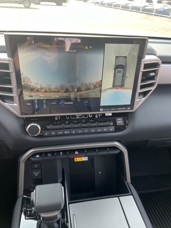 23款丰田红杉采用的是四辐式多功能方向盘,并保留了很多物理按键,足以满足驾驶时想要的操控感,车内的科技氛围是通过12.3英寸的全液晶仪表盘和14英寸的中控屏来实现的,中控屏两侧的空调出风口,虽然没有采用时下流行的贯通式设计,但在中控台上对称排列也别有一番风味。