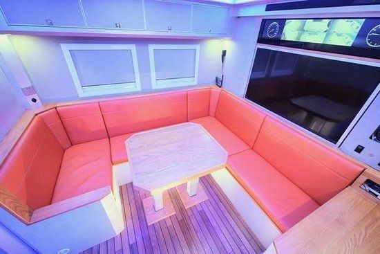布局方面,采用了会客区U型卡座+双电动支腿升降餐桌+厨房区+卫生间+横置拓展床的布局,冷色系氛围等+暖色光源营造出美轮美奂的效果,让成员即使在外旅行也能感受到住家的感觉。前部通舱口位置设计为32寸飞利浦液晶电视,配合室内日本YAMAHA八喇叭音响系统(带低音炮),即便走到哪里都是一个移动的私人家庭影院,邀请亲朋好友一起观看相信能带