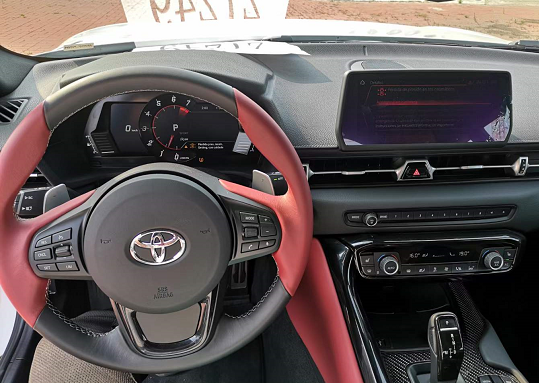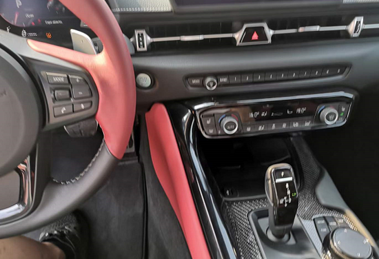 丰田牛魔王Supra内饰有黑色和黑红双色这两套风格可选,丰田Supra并没有一味追求极致简约的运动,其还记得通过氛围把科技和品质感给营造齐。虽然都仍坚持以驾驶者为中心,但关乎日常驾驶的体验部分丝毫不差,像双8.8英寸全液晶仪表+中控大屏的加入很显档次。