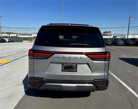 2023款雷克萨斯LX600尾灯造型明显更加复杂化,首先两侧的尾灯采用了组合式的效果,加入了炭黑元素的,气场瞬间爆棚,而两侧的尾灯由一条灯带连接到一起,点亮后会发现是一款分段式的效果,但如果没点亮这就是贯穿的整体。