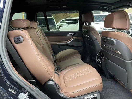 全新一代23款平行进口宝马X7在将第二排的腿部空间调整至两拳后,第三排可以获得一拳的腿部空间,虽然头部空间比较有限,不能与MPV车型相提并论,但是宝马X7的第三排也并不像一般SUV车型那样会有一种压抑感,客观地说,宝马X7的整个座舱空间还是相当宽敞。并且车内第五区的空调就是为第三排乘客服务的,座椅两侧还各有一个Type-C接口,给第三排的乘客带来更多的方便。