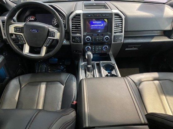 福特F150白金版车内配备标准独特的皮革和布艺装饰的座椅,驾驶员侧的电动十向调节。福特F150白金版这些座椅同时具备记忆功能。中央控制区搭配了触控式显示屏,其下方则是多媒体控制区及空调面板采用旋钮物理按键的组合。