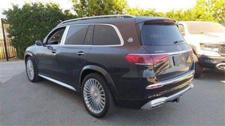 全新23款平行进口迈巴赫车身侧面,新车采用双色车漆喷涂,配备22英寸多幅熏黑轮毂,D柱之上镶嵌迈巴赫专属LOGO,同时车窗周边的镀铬装饰也凸显了尊贵的身份,整体的车身设计简洁而干练。车尾也采用了大量的镀铬装饰,GLS 600和Maybach英文标识所使用的字体样式相比以往车型质感更强。