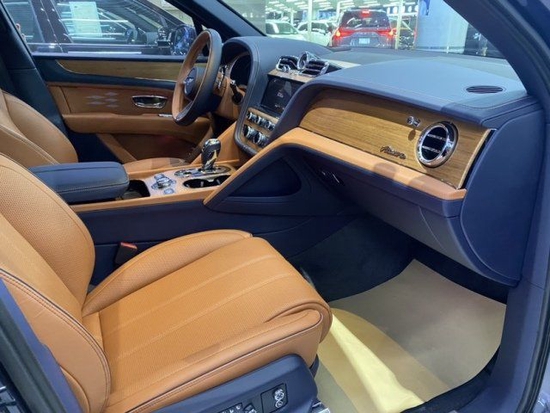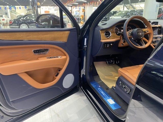 23款宾利添越加长前脸镀铬进气格栅的尺寸更大,两侧矩阵式LED大灯立体感十足,采用了水晶切割工艺,不仅照明效果醒目,同时提升了整车的气质,前包围也更激进了。车身线条更加的硬朗,看起来也非常的优雅,底部22寸喷漆轮毂的配备,保持了车身的稳定性。
