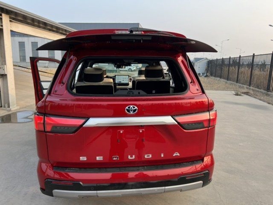 23款全新丰田红杉车尾部配备了一个小型车顶扰流板以及后雨刷器,尾灯样式也非常粗壮,并由一个同样粗壮的装饰条相连接,并与灯组内部的LED光源形成贯穿式设计,提升了尾部的横向视觉效果。贵宾购车电话:17627885113 祝经理 (微信同电话)