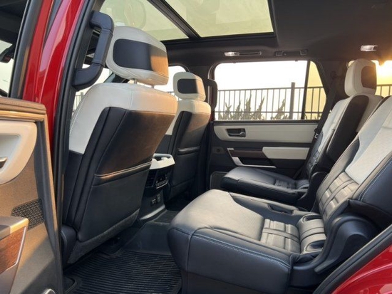 23款全新丰田红杉车身侧面来看,新车拥有更加完整的车体结构,隐藏式的A柱设计营造出了悬浮式车顶的视觉感受,前后侧面翼子板造型也更好的突出了新车宽体的设计思路,搭配六螺栓孔的大尺寸轮圈,提升了整车的气场。