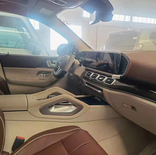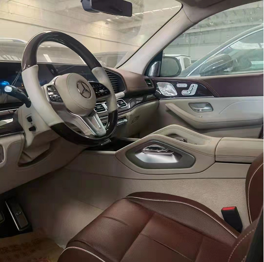 奔驰迈巴赫GLS600方向盘、中控台等处都使用了实木、真皮等材质,触感、观感都无可挑剔。同时,新车还配备了该车型专属的64色氛围灯、名为“NO.8 mood”香氛系统和Burmester品高端3D环绕音响系统。